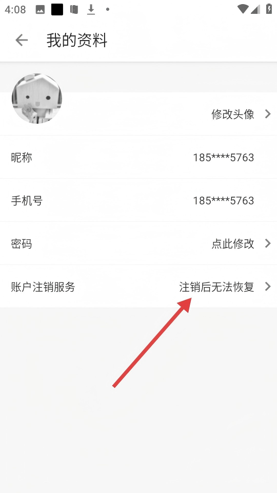3、在【我的資料】頁面,點(diǎn)擊【賬戶注銷服務(wù)】可進(jìn)入注銷流程。