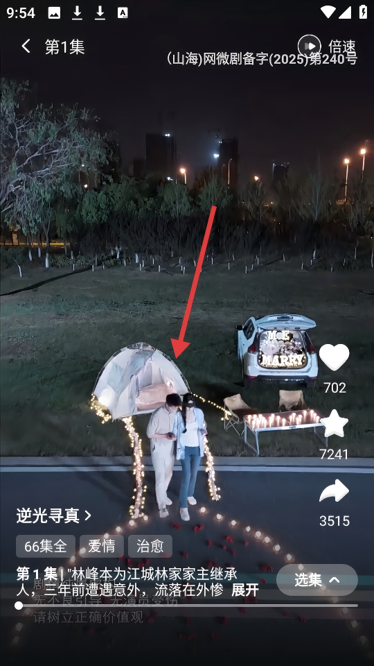 4、找到【逆光尋真】這部劇,可查看其集數(shù)和標簽,即可觀看第1集。