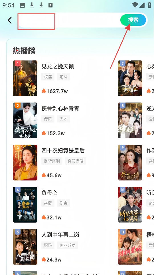 2、在搜索框輸入內(nèi)容后,點擊【搜索】按鈕,可獲取相關劇集結果。