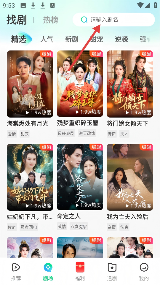 1、在找劇頁面的【請輸入劇名】搜索框中輸入劇名,可查找想要的劇集。
