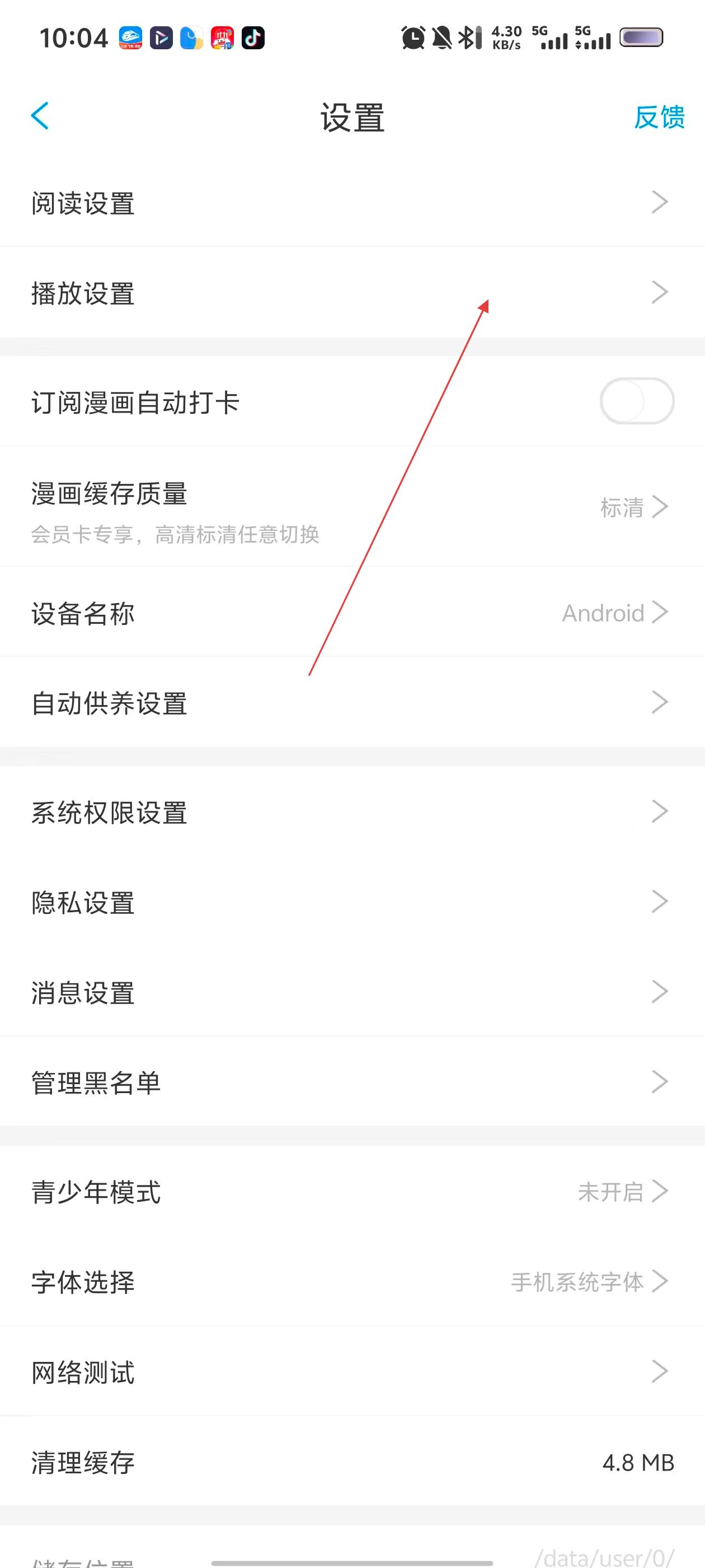 3、在設(shè)置界面,點(diǎn)擊【播放設(shè)置】,可進(jìn)入播放設(shè)置界面,可對(duì)【視頻自動(dòng)播放】【視頻連續(xù)播放】等功能進(jìn)行設(shè)置。