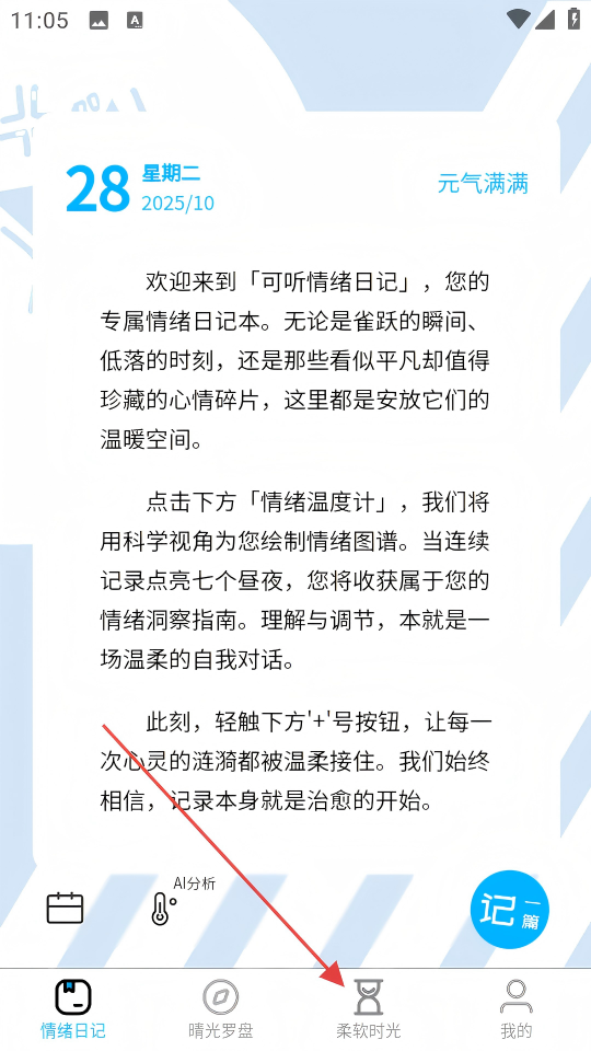 1、點(diǎn)擊底部【柔軟時光】選項(xiàng),可進(jìn)入該頁面。
