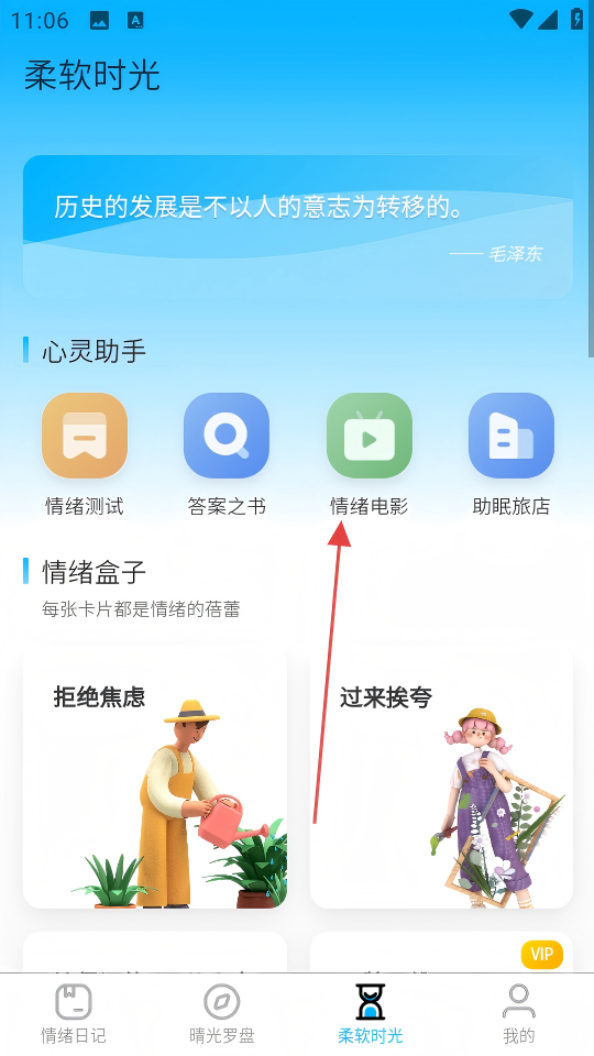2、在柔軟時光頁面點(diǎn)擊【情緒電影】,可進(jìn)入情緒藥丸頁面。