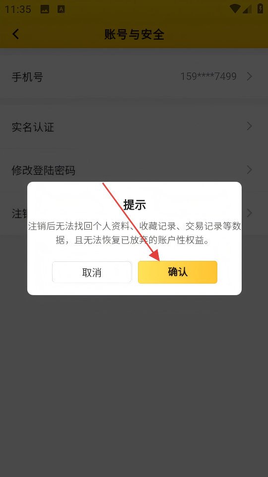 4、在注銷提示彈窗中點(diǎn)擊【確認(rèn)】按鈕,即可完成賬號(hào)注銷操作。
