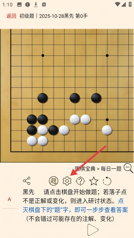 3、在初級(jí)題界面,可點(diǎn)擊棋盤下方【設(shè)置】按鈕。