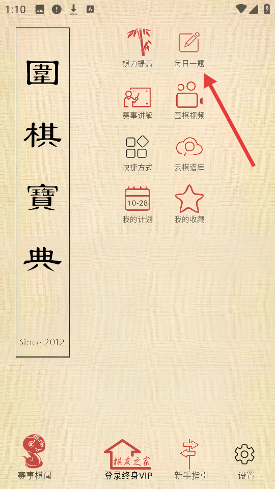 1、進(jìn)入圍棋寶典主界面后,點(diǎn)擊【每日一題】可進(jìn)入題目選擇環(huán)節(jié)。