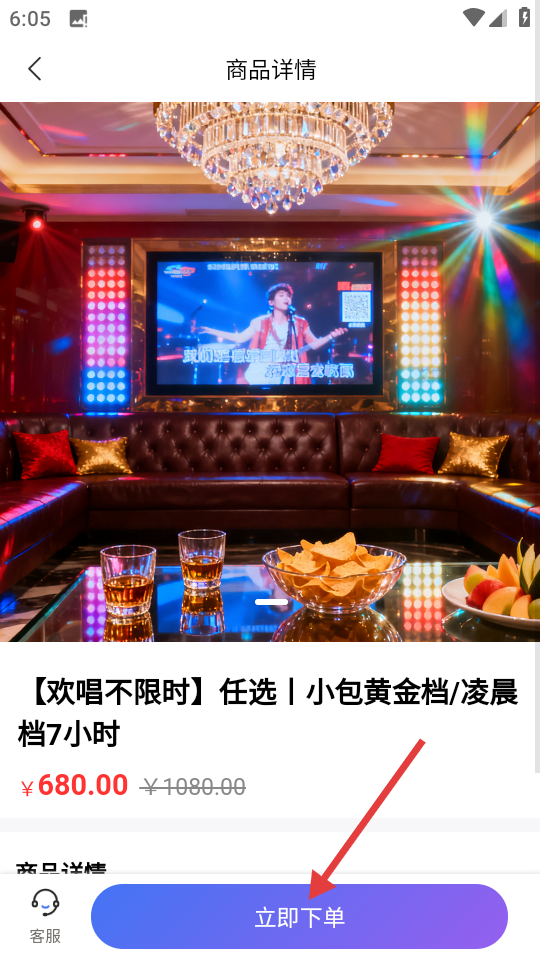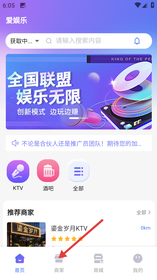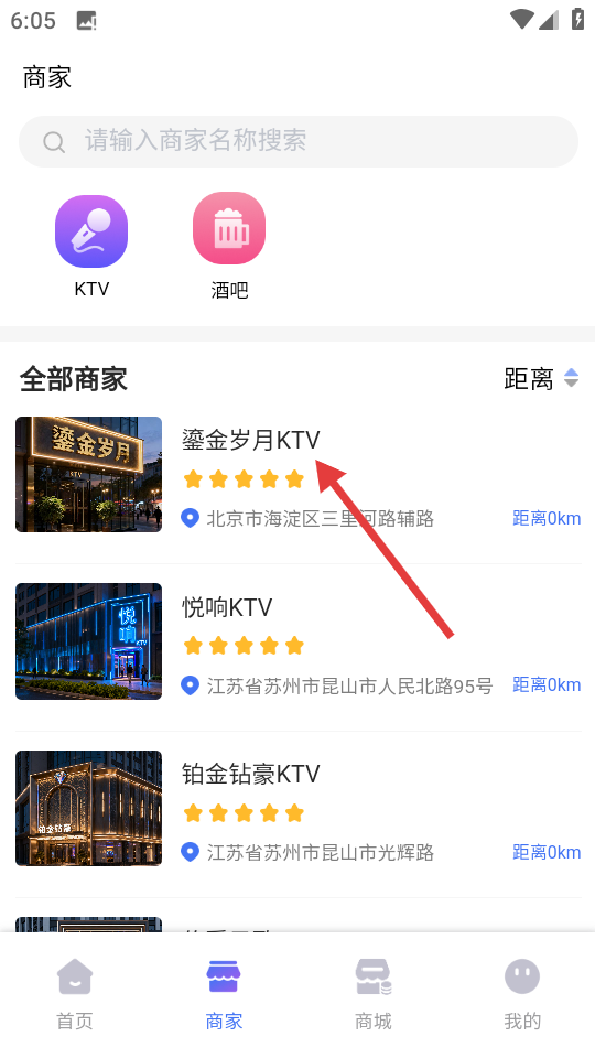 2、在商家列表中,選擇【鎏金歲月KTV】,進(jìn)入商家詳情頁(yè)。