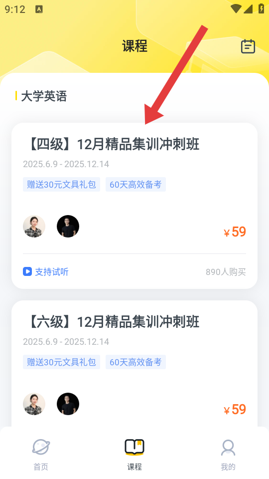 2、在課程頁面找到【四級】12月精品集訓(xùn)沖刺班,點(diǎn)擊進(jìn)入課程詳情。