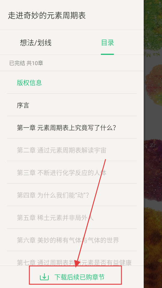 4、在目錄頁(yè)面,可點(diǎn)擊【下載后續(xù)已購(gòu)章節(jié)】,下載已購(gòu)買的后續(xù)章節(jié),以便離線閱讀啦。