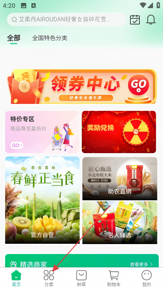 2、設(shè)有領(lǐng)券中心,用戶能查找各類購物優(yōu)惠券并一鍵領(lǐng)取,使用優(yōu)惠券以更低價(jià)格購買特色農(nóng)產(chǎn)品,提升性價(jià)比。