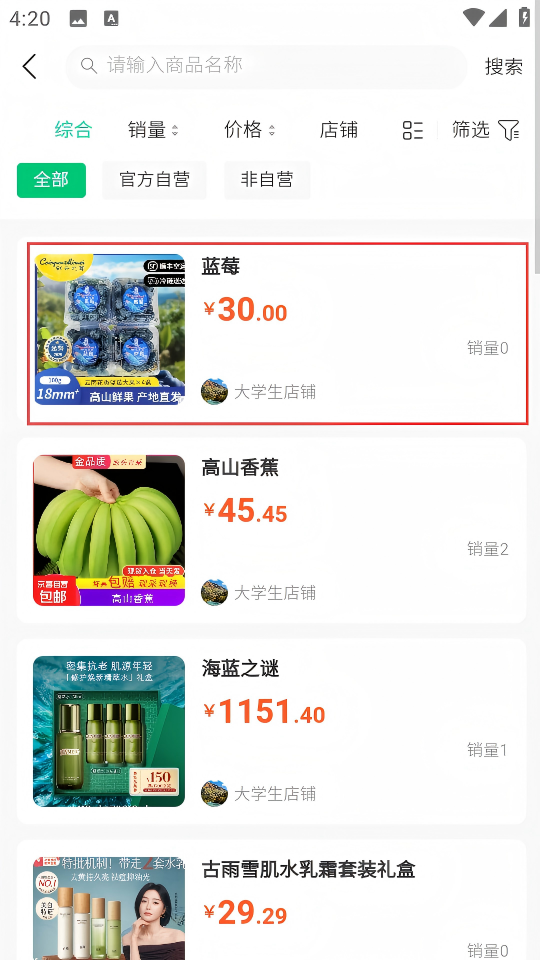 3、在商品列表頁面,找到【藍(lán)莓】商品,點(diǎn)擊進(jìn)入該商品詳情頁。