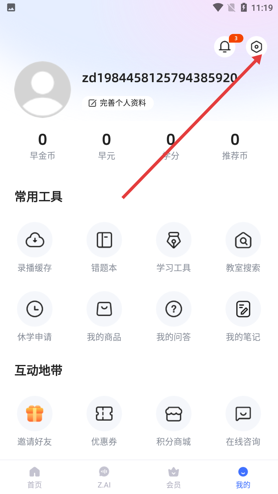 2、在個人頁面,點擊右上角【設(shè)置】圖標(biāo),進(jìn)入設(shè)置界面。