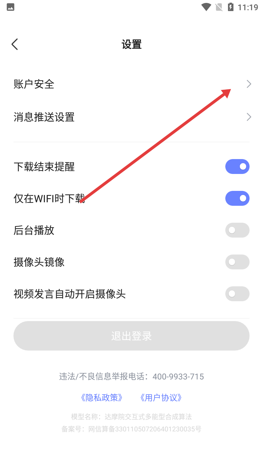 3、在設(shè)置界面,點擊【賬戶安全】選項,進(jìn)入賬戶安全頁面。
