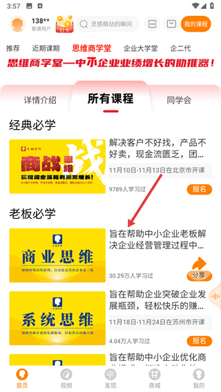 2、在課程列表中,點(diǎn)擊【商業(yè)思維】課程。