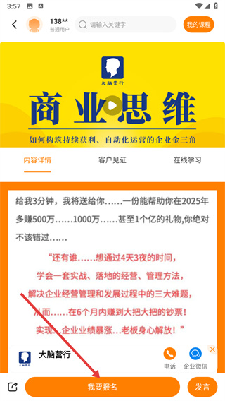 3、在課程詳情頁(yè)面,點(diǎn)擊【我要報(bào)名】按鈕。