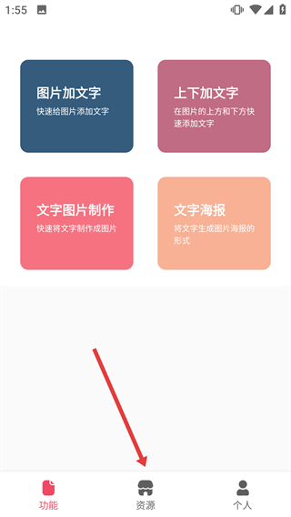1、點擊底部【資源】,進入資源頁面,可選擇不同顏色的背景模板。