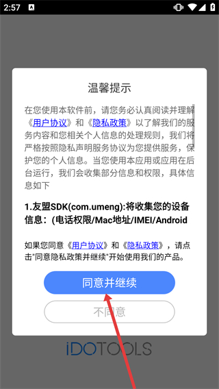 1、在軟件啟動(dòng)的溫馨提示頁(yè)面,閱讀《用戶協(xié)議》與《隱私政策》后,點(diǎn)擊【同意并繼續(xù)】按鈕,進(jìn)入二次元計(jì)算器的標(biāo)準(zhǔn)計(jì)算界面。