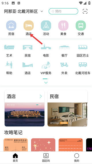 1、在阿那亞APP首頁點擊【酒店】,進入酒店列表頁面,準備選擇目標酒店。