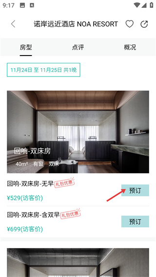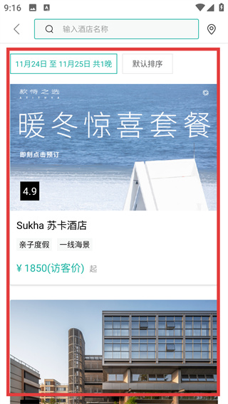 2、在酒店列表中選擇目標酒店,如【諾岸遠近酒店】,進入酒店詳情頁面。