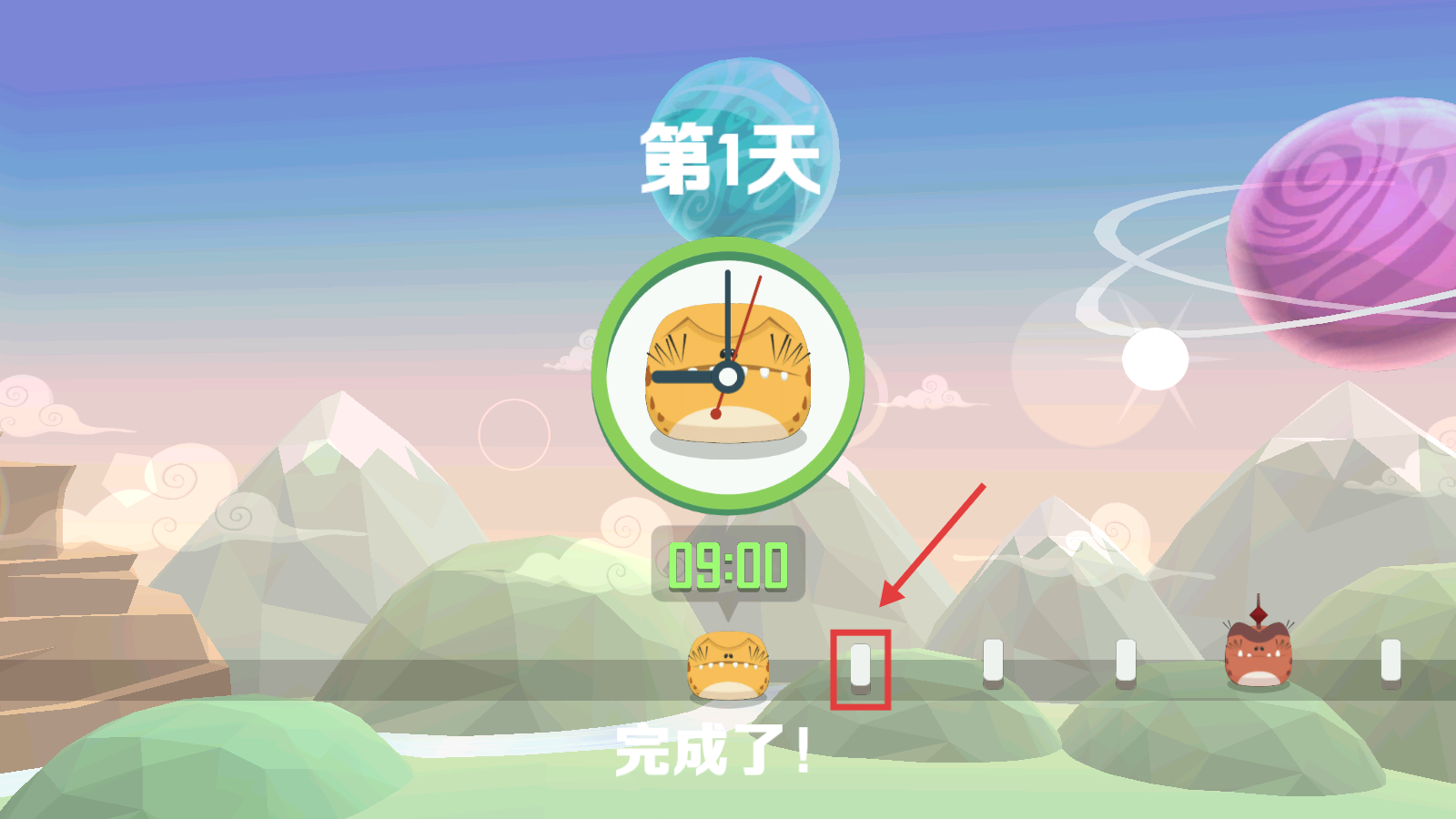4、當(dāng)屏幕顯示【完成了】時,說明當(dāng)天戰(zhàn)斗結(jié)束,我們點擊下一個節(jié)點,再次起航新的冒險啦。