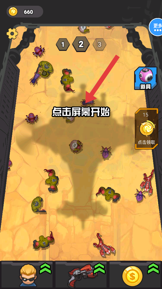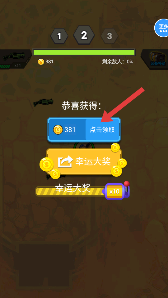 4、消滅所有敵人后,點(diǎn)擊【點(diǎn)擊領(lǐng)取】按鈕,獲取關(guān)卡獎(jiǎng)勵(lì),準(zhǔn)備挑戰(zhàn)下一關(guān)。