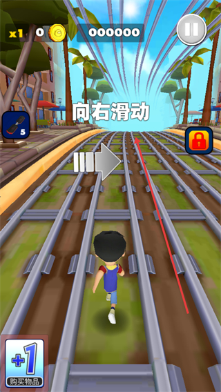 1、按照提示【向右滑動】屏幕,控制角色在軌道上向右移動。