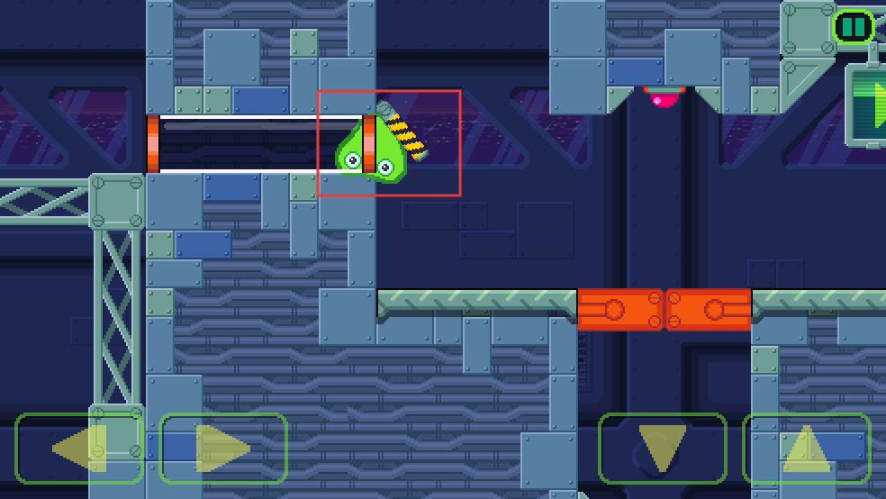 3、行走過程中,會遇到如傳送帶等機關(guān),操控小怪物進(jìn)入傳送帶區(qū)域,借助傳送帶移動到不同位置。