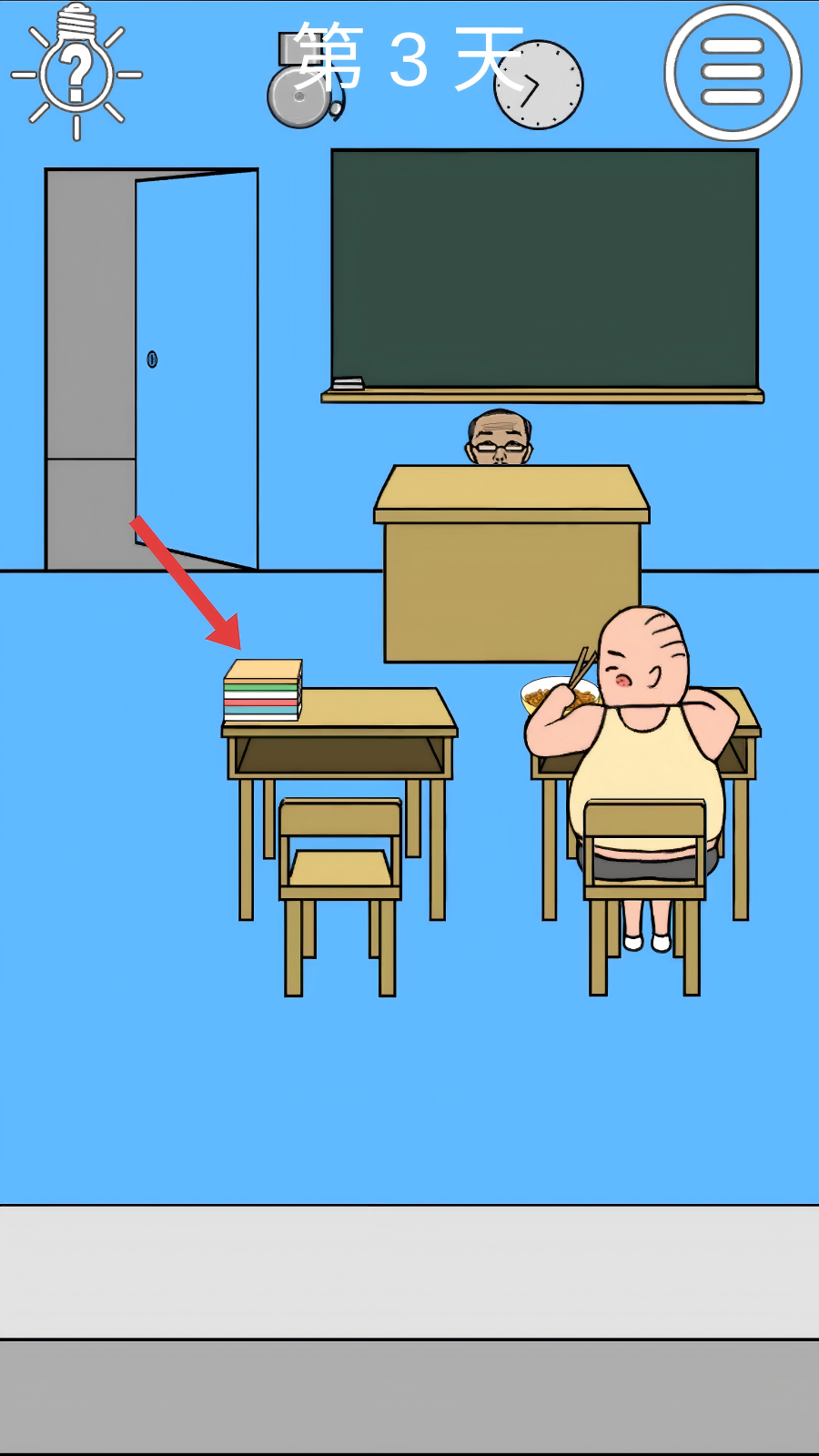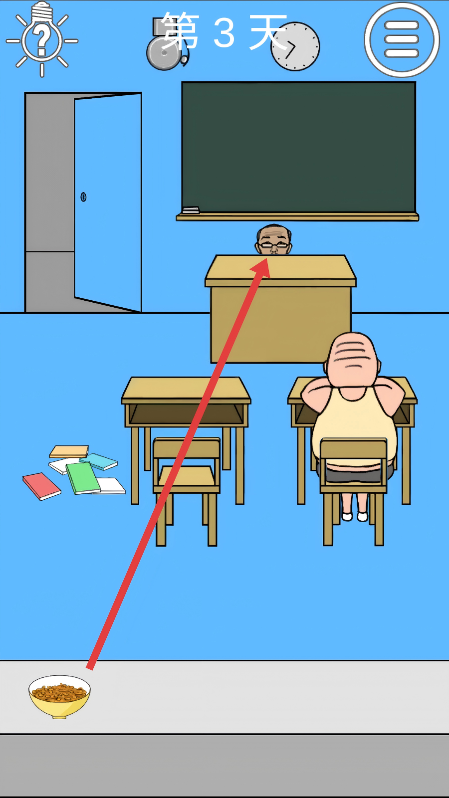 2、把【方便面碗】移動到老師面前,轉(zhuǎn)移他的注意力,以此創(chuàng)造逃課機(jī)會哦。