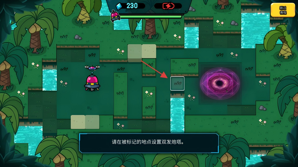 2、在關(guān)卡中找到被標(biāo)記的地點(diǎn),準(zhǔn)備設(shè)置雙發(fā)炮塔。