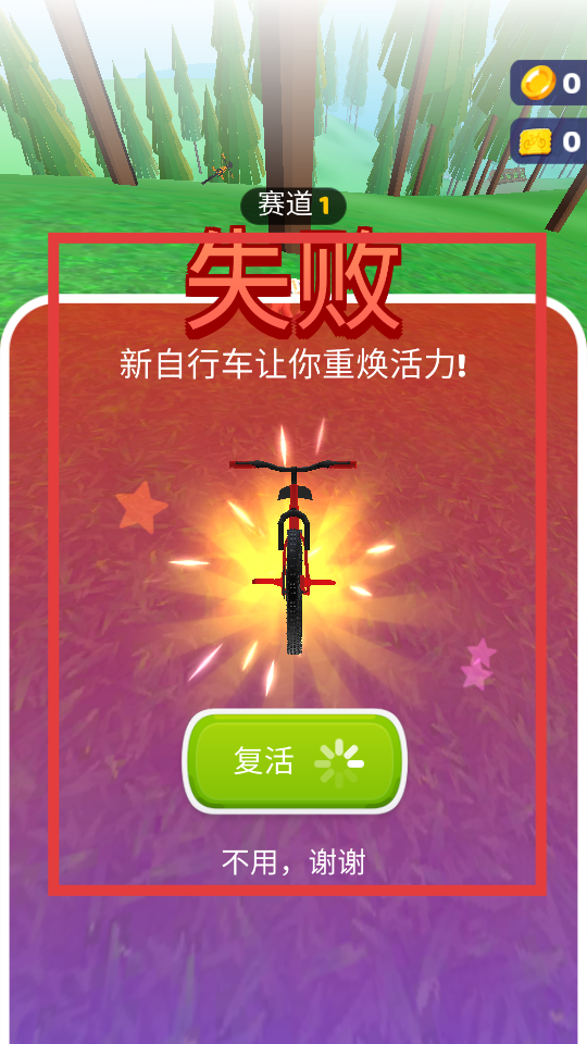 3、比賽失敗時(shí),可選擇【復(fù)活】繼續(xù)比賽,利用無限金幣優(yōu)勢(shì)無需擔(dān)心資源消耗。