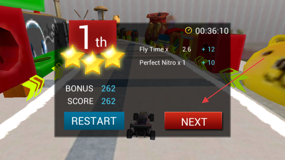 4、獲得第一名后點(diǎn)擊【NEXT】按鈕,繼續(xù)挑戰(zhàn)下一關(guān),爭取獲取更高分?jǐn)?shù)和星級(jí)評(píng)價(jià)。