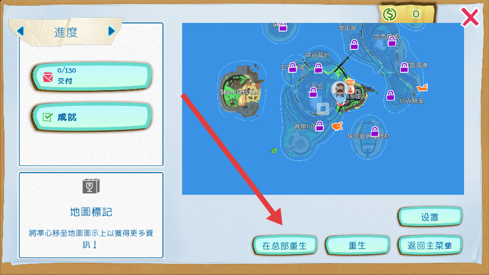 1、在地圖界面,可選擇【在總部重生】等選項,重置角色位置,方便重新規(guī)劃快遞配送路線。