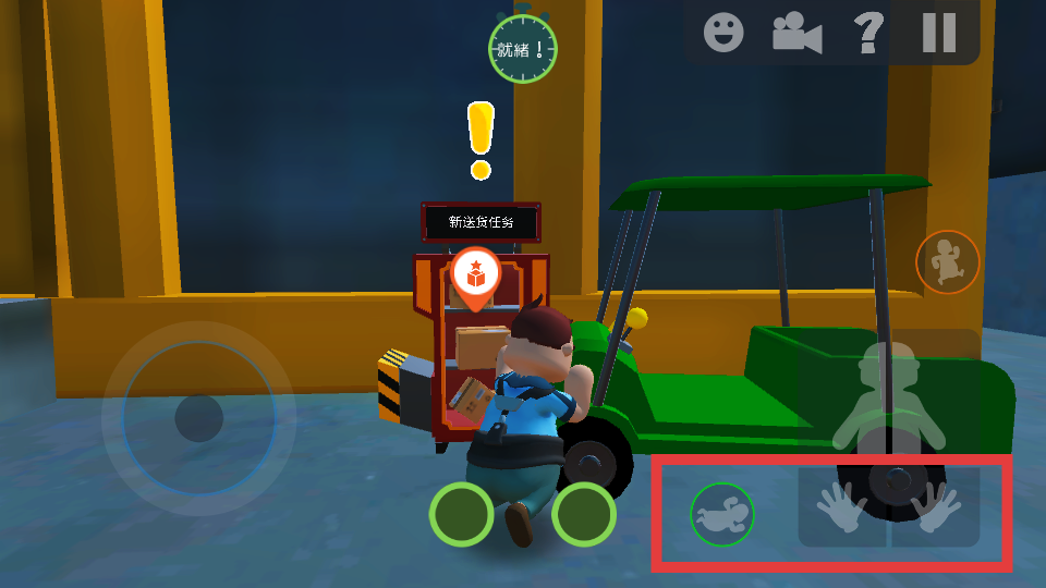 2、游戲中左側(cè)虛擬搖桿控制角色移動,右側(cè)按鍵控制角色動作,如跳躍、互動等,靈活操作完成快遞配送任務(wù)。