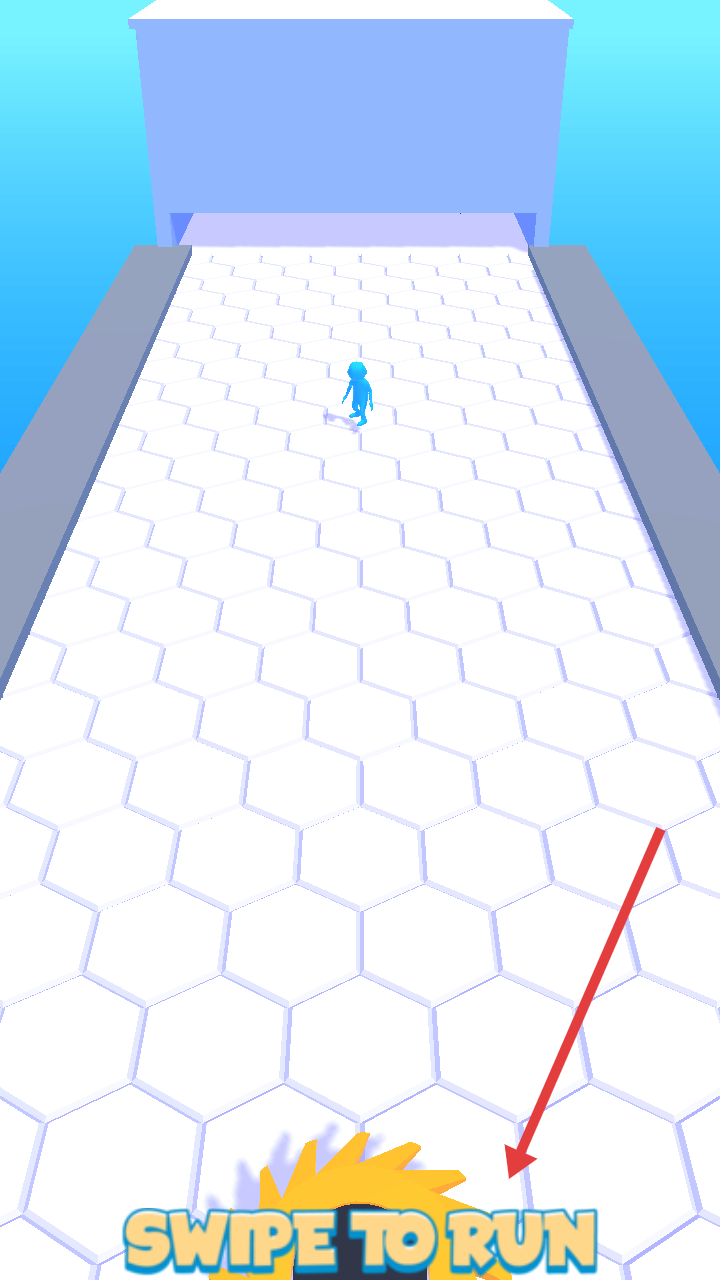 1、滑動屏幕操控藍色角色在六邊形賽道上開始游戲,需躲避紅色人群和黃色齒輪等障礙物。