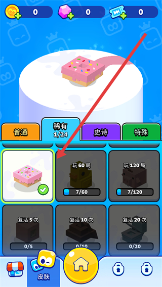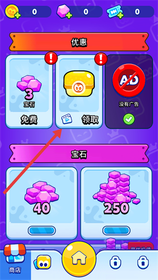 1、在皮膚界面,可解鎖稀有皮膚(如甜甜圈樣式),提升角色外觀。通過商店領(lǐng)取免費(fèi)寶石等資源,強(qiáng)化游戲體驗(yàn)。