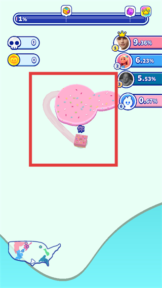 3、操控紙片在地圖上移動(dòng),吞噬區(qū)域擴(kuò)大自身面積,與其他玩家競爭占比,爭取更高排名。