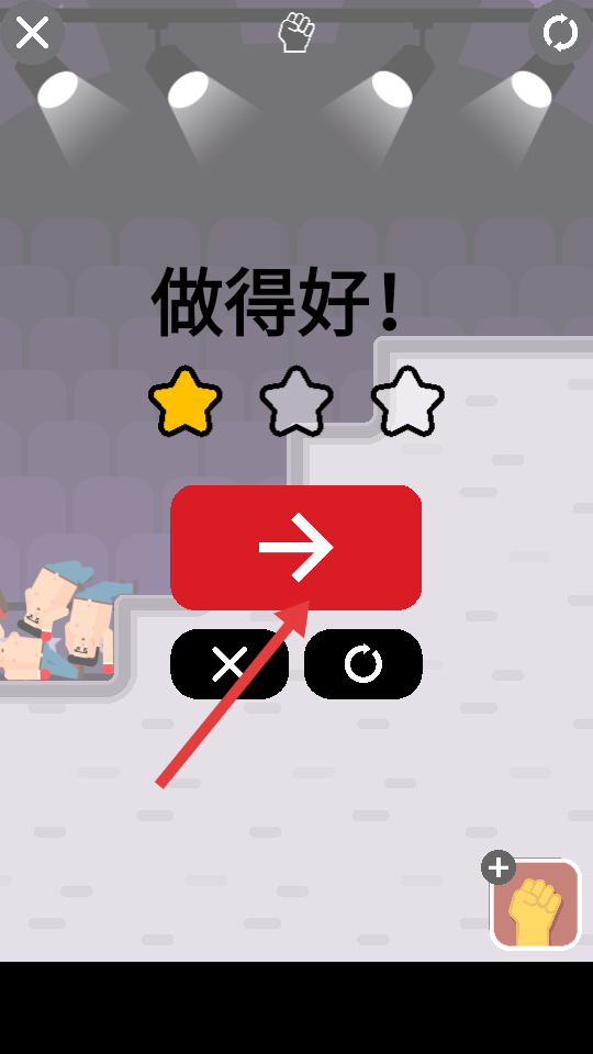 4、關(guān)卡完成后點(diǎn)擊箭頭按鈕,繼續(xù)挑戰(zhàn)下一關(guān)。