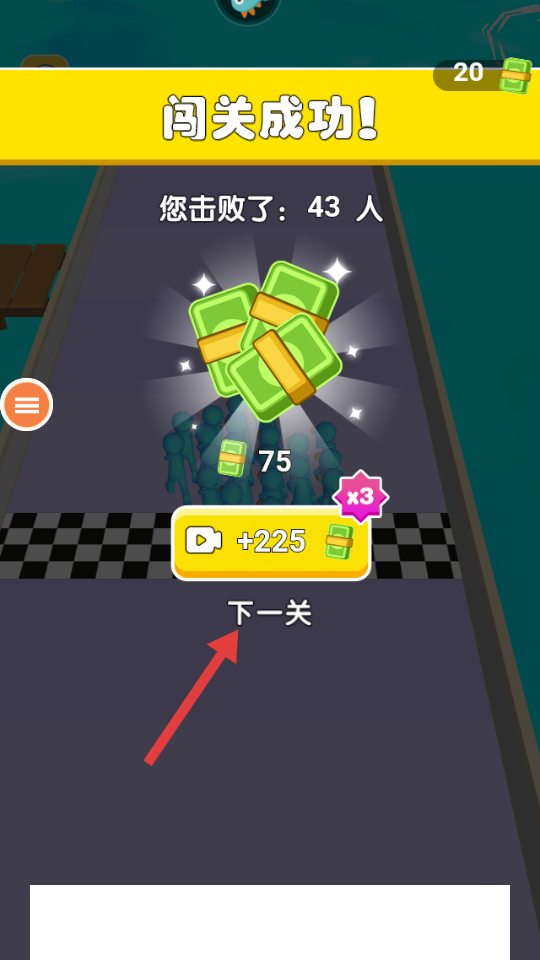 4、闖關(guān)成功后點(diǎn)擊【下一關(guān)】,繼續(xù)挑戰(zhàn)新關(guān)卡。