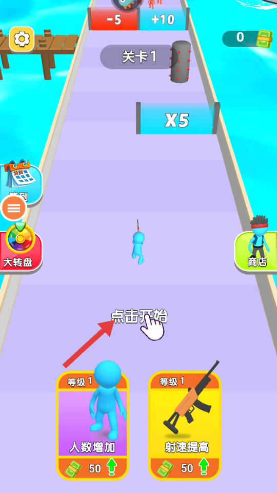 1、點(diǎn)擊【點(diǎn)擊開始】,進(jìn)入關(guān)卡1,開啟游戲挑戰(zhàn)。