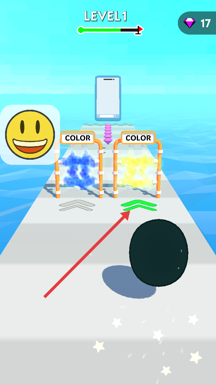 3、通過顏色區(qū)域時(shí),注意選擇正確路徑,確保黑色圓球順利通過,繼續(xù)向終點(diǎn)前進(jìn)。