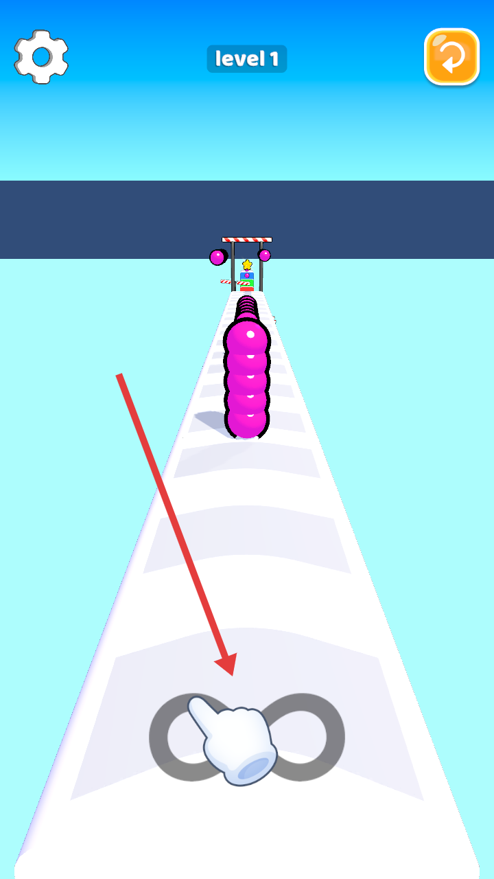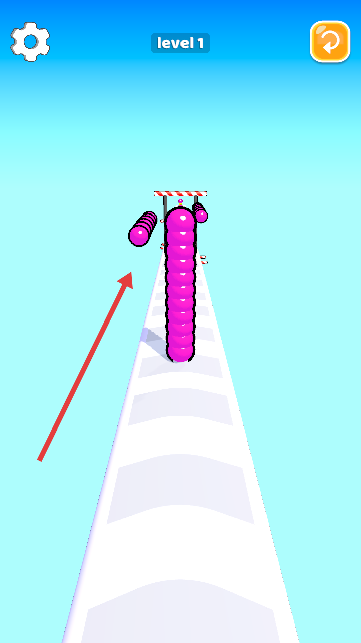 2、收集賽道上的粉色圓球,增加自身長(zhǎng)度,壯大粉色長(zhǎng)條實(shí)力,助力在賽道上順利推進(jìn)。