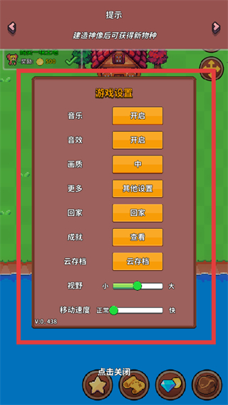 4、休閑氛圍貫穿全程,輕快的音樂搭配像素風(fēng),輔助菜單減操作負(fù)擔(dān),碎片時(shí)間放松享慢生活。