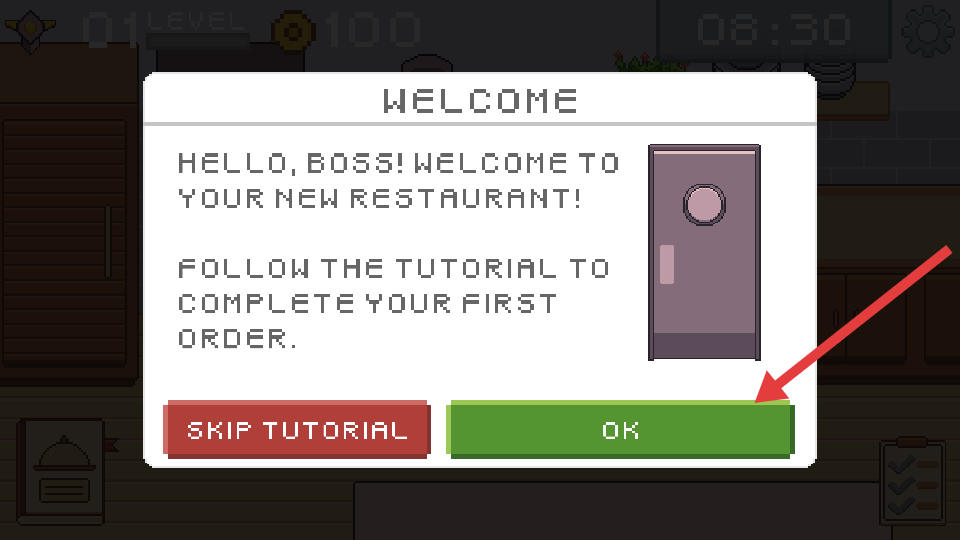 2、在歡迎界面點(diǎn)擊【OK】跟隨教程,學(xué)習(xí)完成第一份訂單的操作流程,快速熟悉游戲玩法。