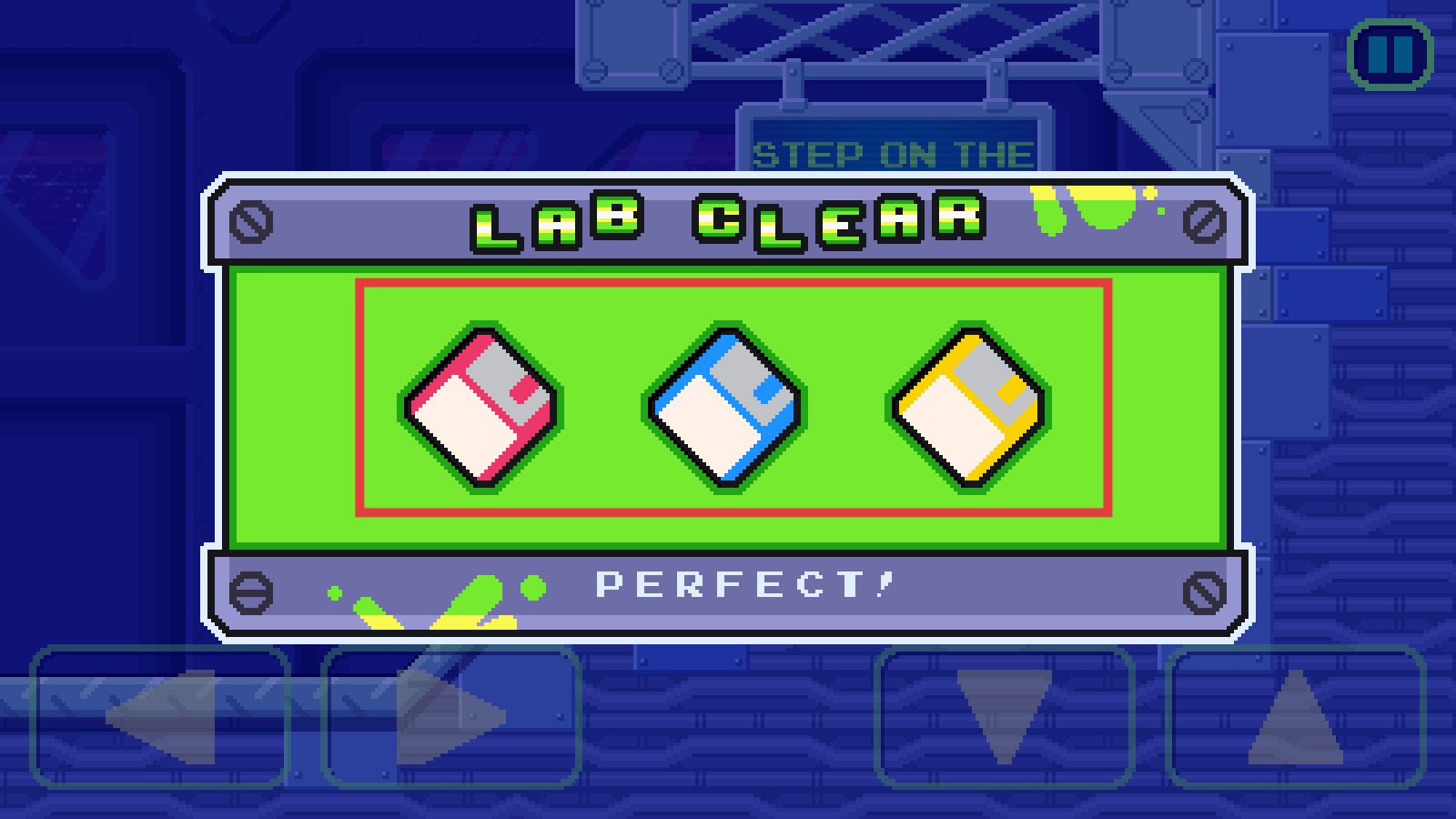 4、關(guān)卡完成后會(huì)顯示【LABCLEAR】,獲得不同顏色的存儲(chǔ)圖標(biāo),追求【PERFECT!】評(píng)價(jià),收集全部物品可提升通關(guān)質(zhì)量。