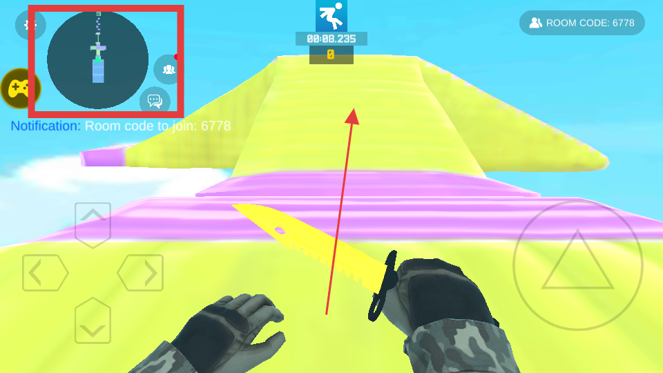 2、游戲中關(guān)注左上角地圖提示,沿著路線推進(jìn),利用跑酷操作跨越彩色障礙,提升跑酷效率。