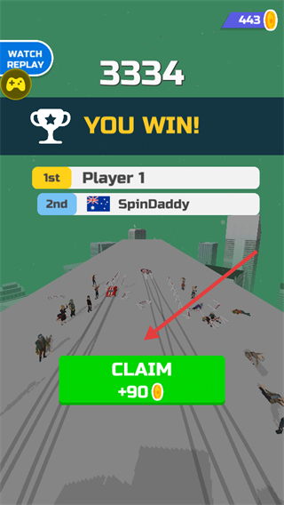 4、比賽勝利后,點(diǎn)擊【CLAIM】按鈕領(lǐng)取金幣獎勵,積累資源繼續(xù)挑戰(zhàn)更高難度的比賽。