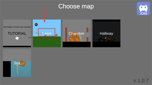 1、在【Choose-map】界面,新手建議先選【TUTORIAL】地圖熟悉玩法,再嘗試【Lawn】等其他地圖。
