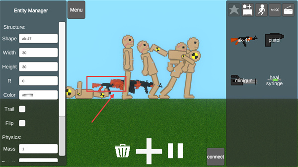 3、右側(cè)道具欄可選擇【ak-47】等武器放置場(chǎng)景,搭配模型構(gòu)建戰(zhàn)斗類場(chǎng)景布局。