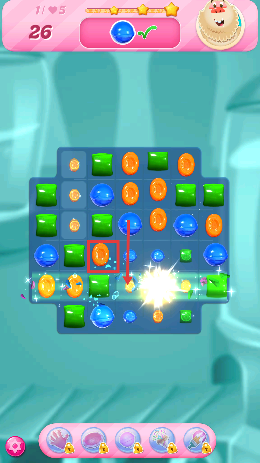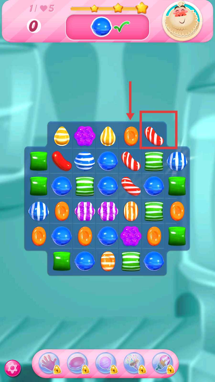 3、留意特殊糖果,如紅白條紋糖果,通過消除其周圍糖果可觸發(fā)特殊效果,大范圍消除糖果,快速推進(jìn)關(guān)卡。